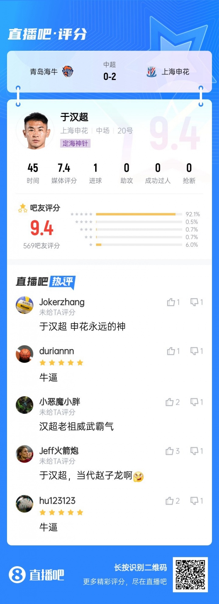 【】中超第六轮最佳球员:38岁于汉超当选,玄学无需多言!
