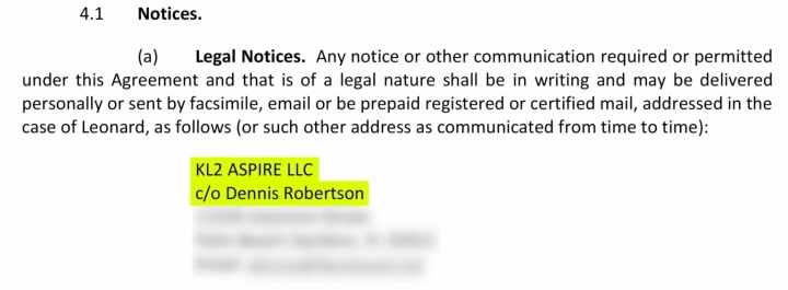 据报道,莱昂纳德与Aspiration公司所签的协议文件显示,莱昂纳德的指定法律代表是其舅舅丹尼斯-罗伯特森。所有这份合同有关的法律问题,都将由其舅舅负责处理。